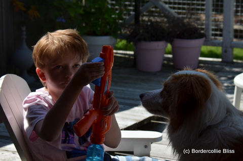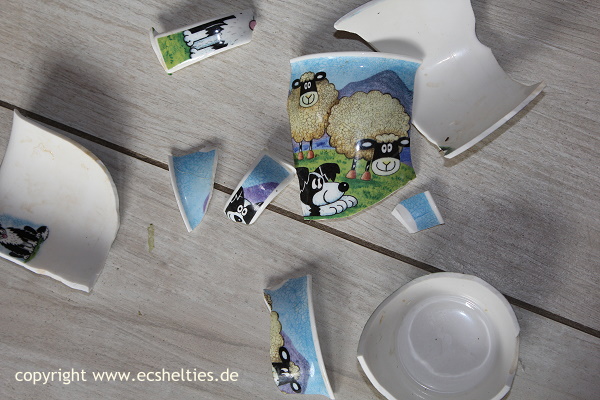 Gestern morgen im Garten erschreckt mich ein lautes Klirren aus dem Haus, ... ich sehe einen kleine roten Border Po von der Bank am Tisch springen und blitzschnell verschwinden ...