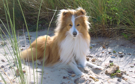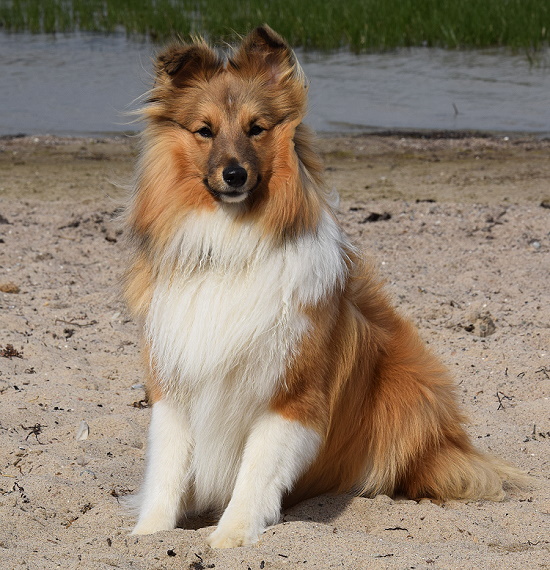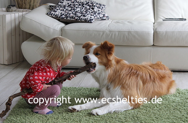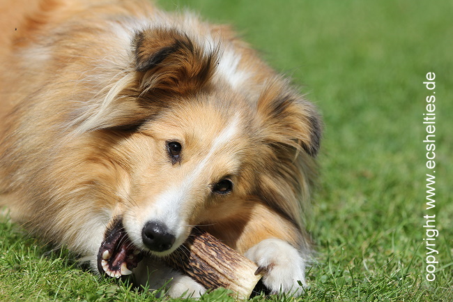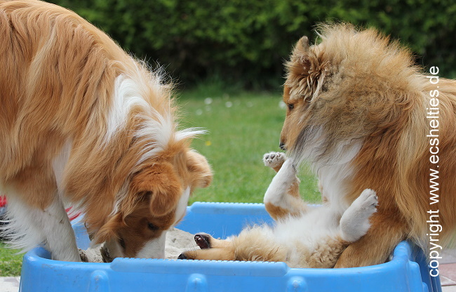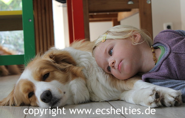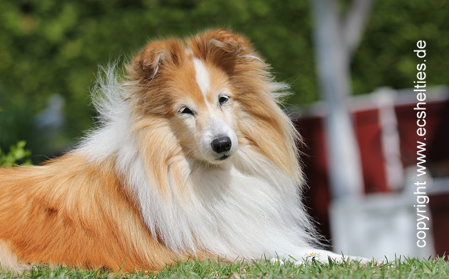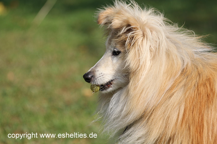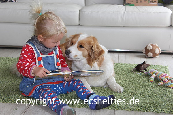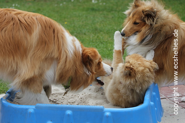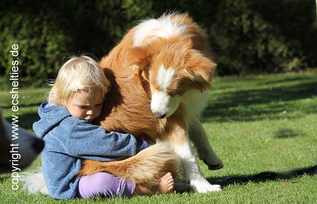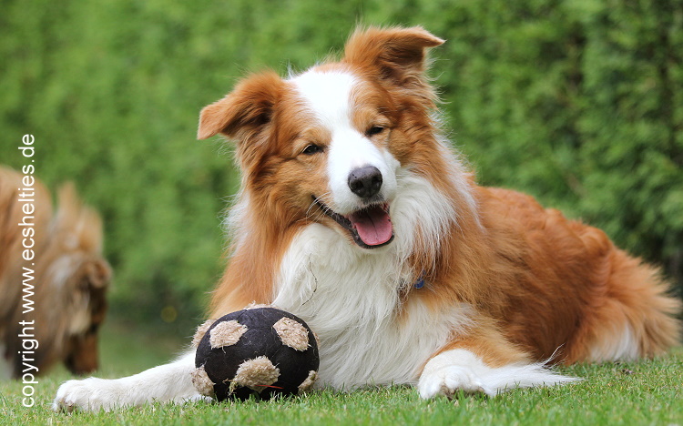 Er ist ein Sohn unserer ersten Sheltiehündin "Skibby" und unseres unvergessenen, wundervollen Rüden "TC".