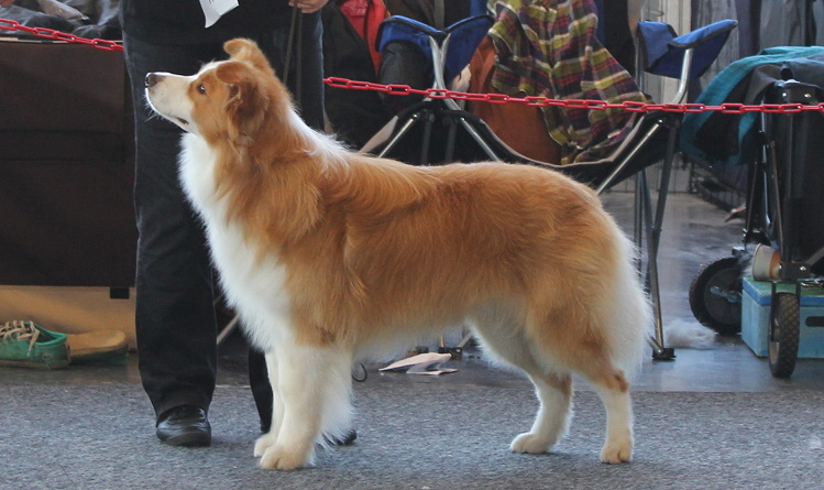 "Joy" zeigte sich von der großen Halle unbeeindruckt und gewann ihre Klasse 1.Platz/JCAC vorzüglich, Best Junghund und