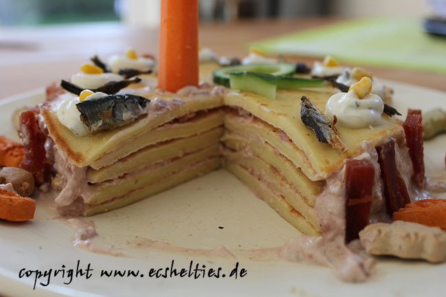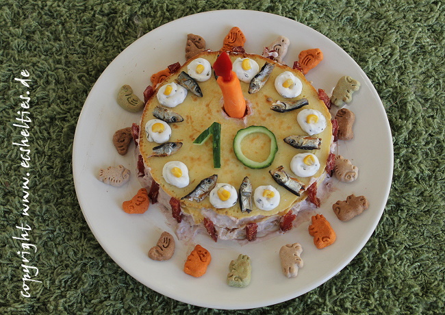 Thomas hat eine extra große Leberwurst - PfannkuchenTorte für unser Bärchen gebacken . Es gab viele leckere Geschenke und