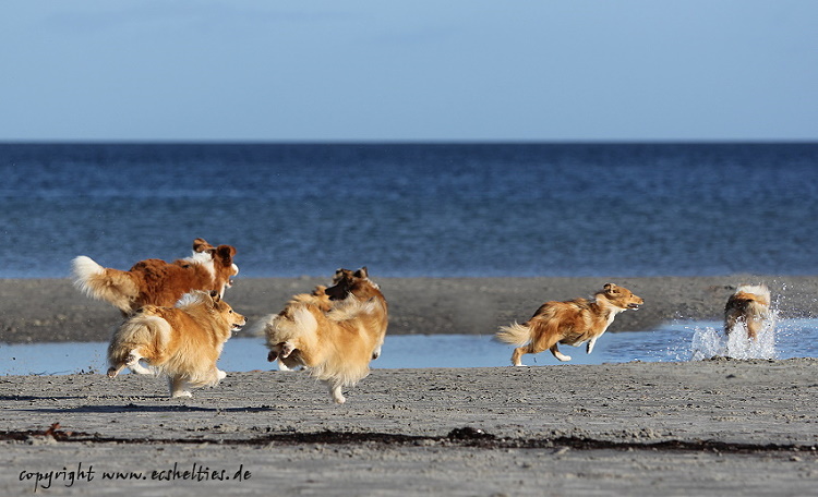 Elisabeth und Burkhard besuchten uns am Wochenende mit ihrem Sheltie Rudel. Wir waren natürlich mit den Hunden am Strand und es war so schön zu sehen