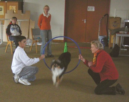 Bei aller Freude über ihrer tolle Leistung, verrieten mir kurzzeitige Blicke der kleinen Maus, dass sie die Arbeit zunehmend anstrengt. Twist würde mich nie im Stich lassen und hat so viel Freude an der Arbeit, dass sie eigene "Schwierigkeiten" der Anstrengung in ihrem Alter ignoriert und trotz Müdigkeit erneut schwanzwedelnt los läuft, um einem Kind eine Aufgabenkarte zu bringen.