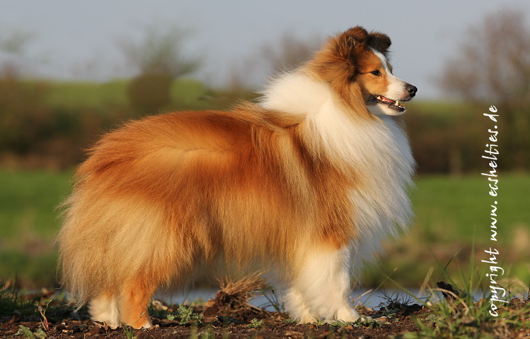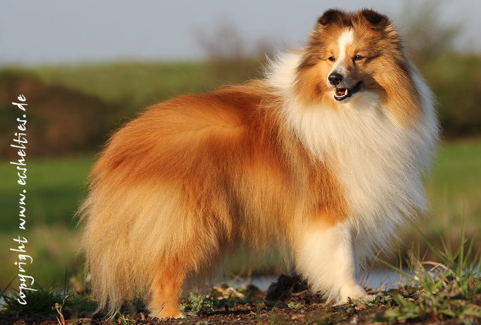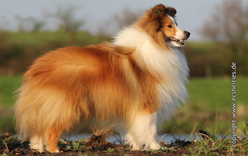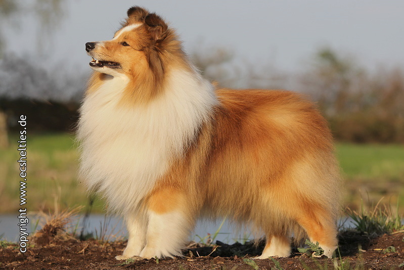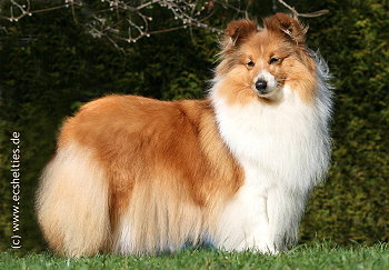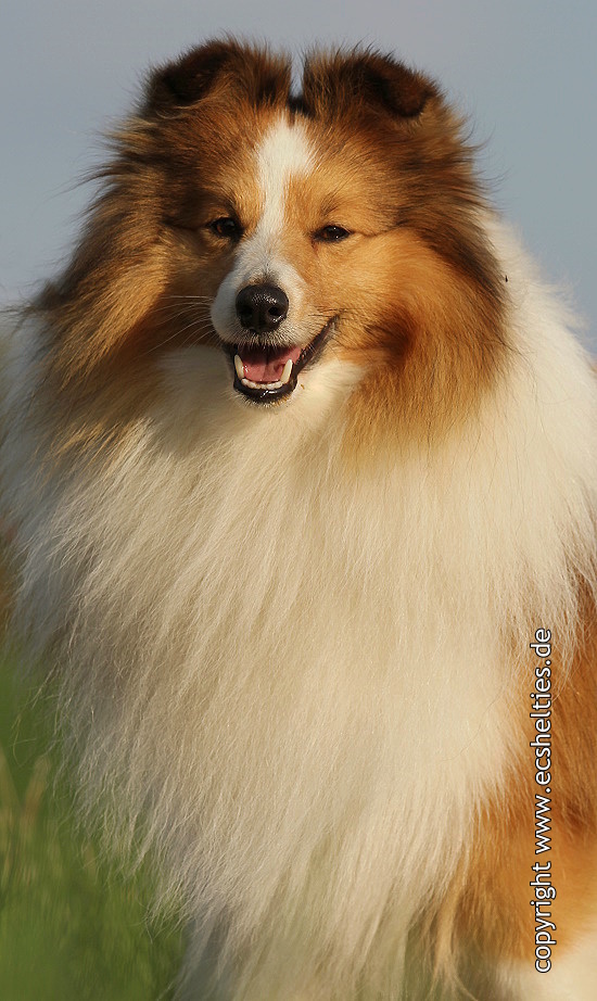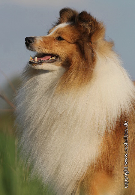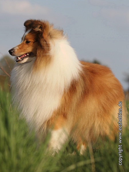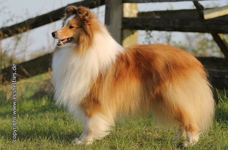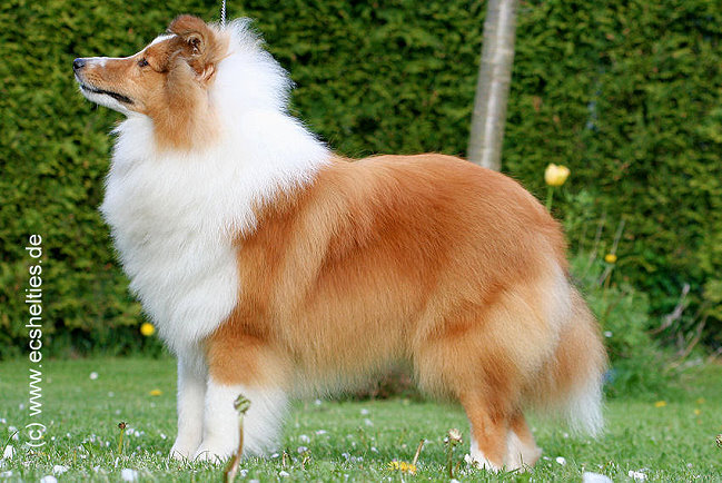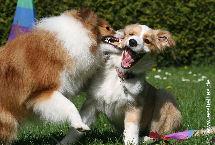 "Joker" ist unser "Clown", er hat ein traumhaftes Wesen , welches er bisher an all seine Kinder weiter vererbt hat. Seine leuchtend rote Farbe ist ein Traum. Joker ist der beste Kumpel unserer Border Collie Hündin. Mit ihr spielt er die wildesten Spiele (siehe Foto weiter unten) - beide sind ein tolles Team. "Joker" stammt aus einer ganz besonderen Verpaarung.