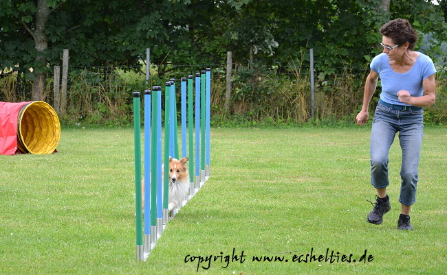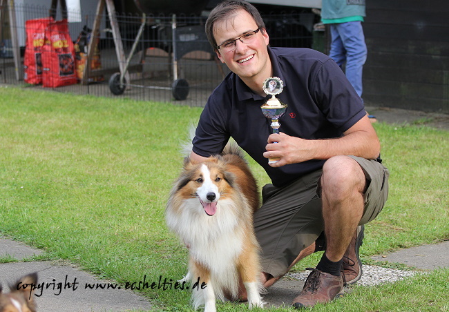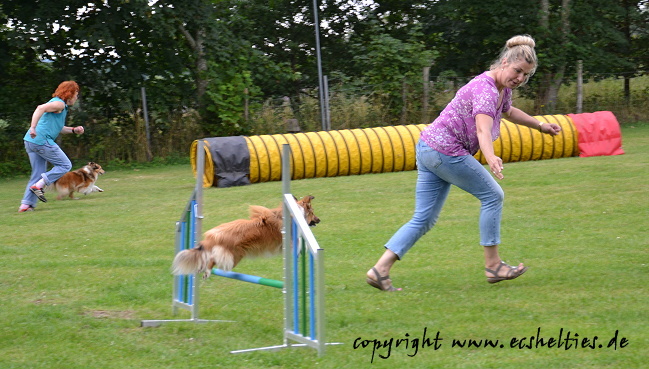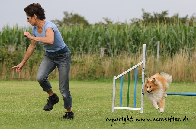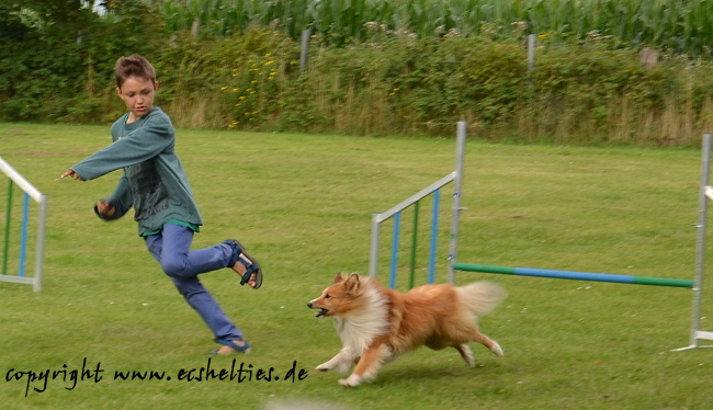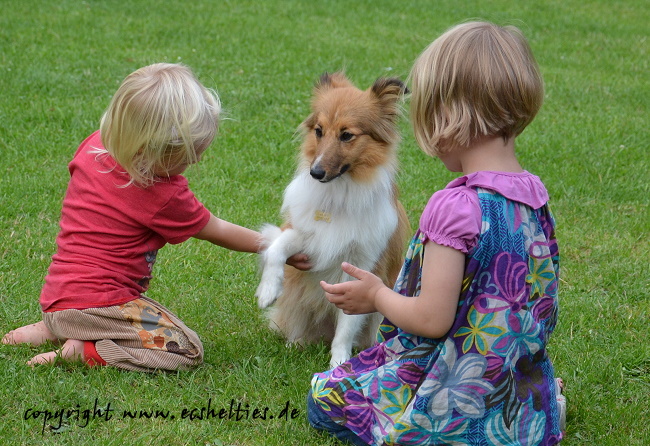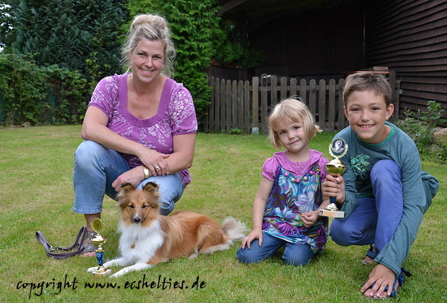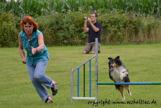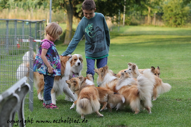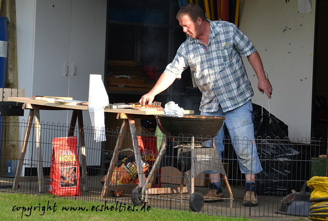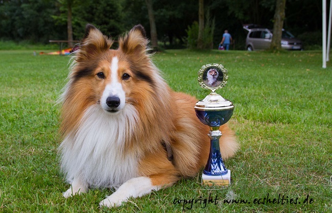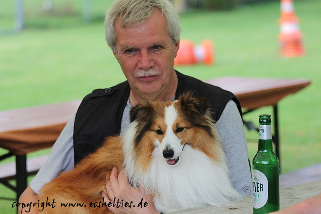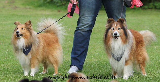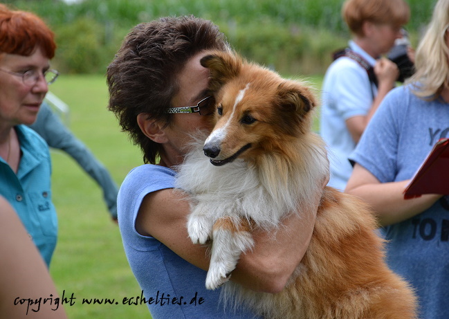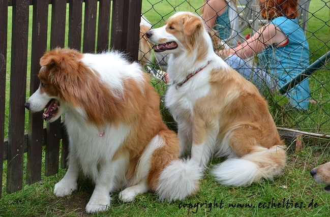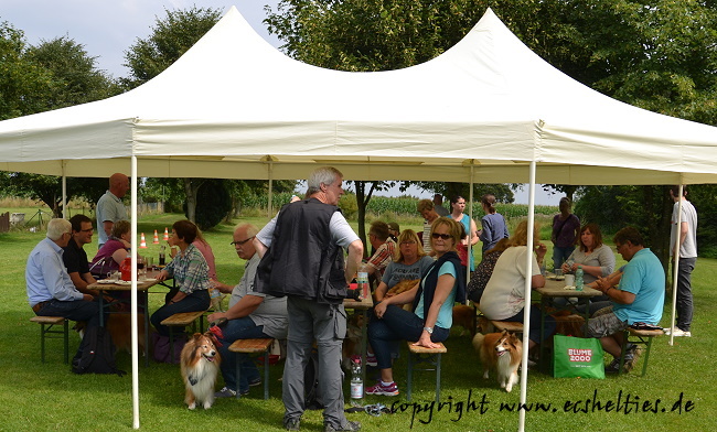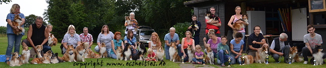 Dies Jahr gab es ein großes Fest und viele Welpenkäufer und Freunde folgten unser Einladung. Die Hunde hatten viel Spaß auf dem großen Gelände und tobten den ganzen Tag. Alle Teilnehmer hatten wieder leckere Kuchen und Salate mitgebracht. Besonders haben wir uns über die zwei wunderschönen Sheltiekuchen und natürlich all die lieben Glückwünsche und Geschenke gefreut. Wir hatten eine schöne Tanzvorführung und es gab wieder das beliebte Sheltie-Rennen ! |